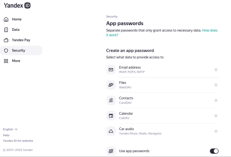 Scroll to the bottom of the Security page that opens and go to "App passwords". Click on "Use app passwords".