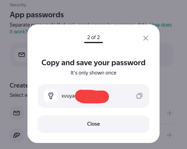 An app password will then show on the screen. It is ONLY SHOWN ONCE so you need to write it down or copy it or save it somewhere or take a screenshot.